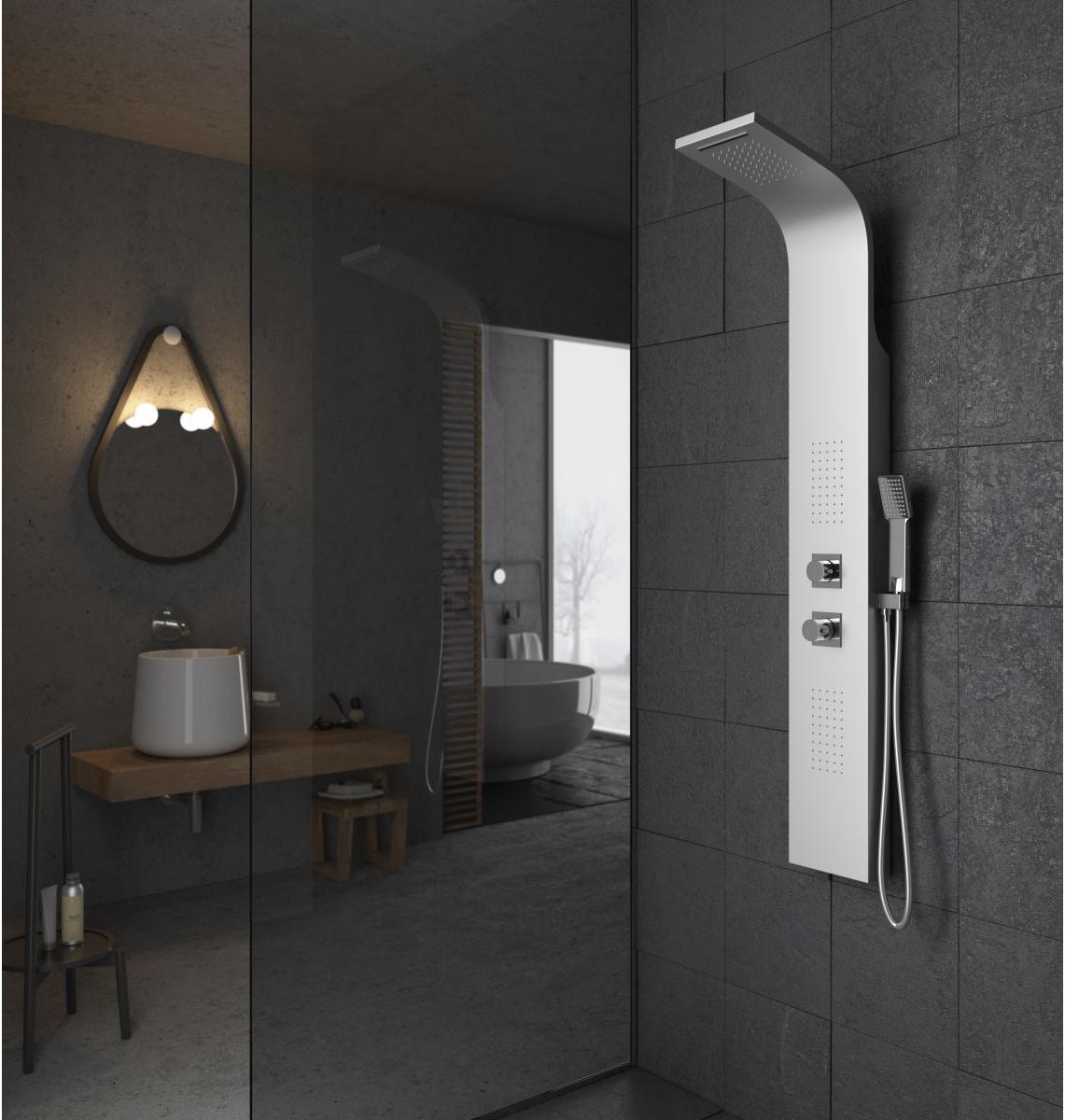 Presume de cuarto de baño, con este diseño de columna ENSA acabado en aluminio y jets de hidromasaje, convirtiendo tu baño en un increible espacio de diseño, relajante y unico