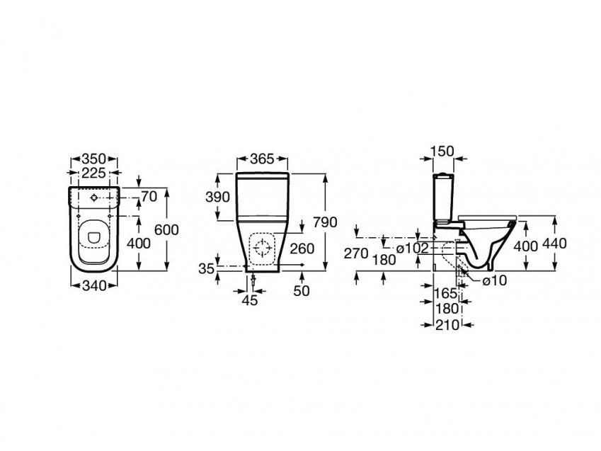 Inodoro completo compacto adosado a pared con salida dual y opción Rimless (Incluye taza, cisterna de alimentación inferior o lateral y tapa con opción caída amortiguada)