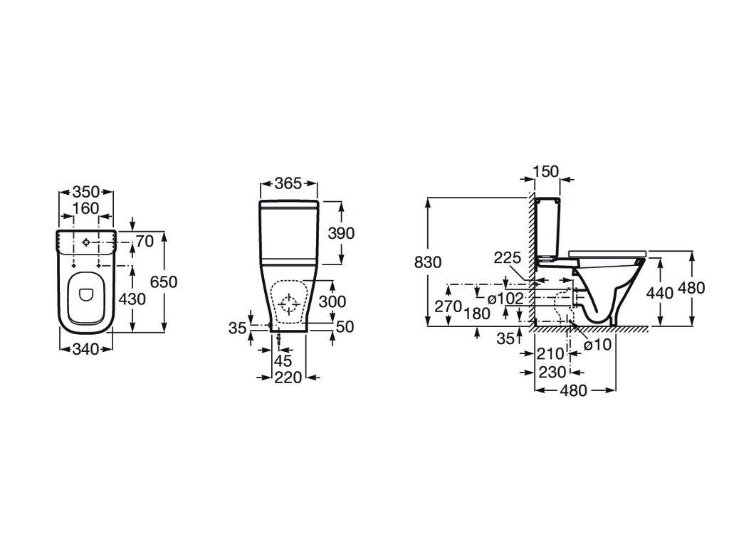 Inodoro completo altura confort adosado a pared con salida dual (incluye taza, cisterna con alimentación inferior o lateral y tapa con opción caida amortiguada)