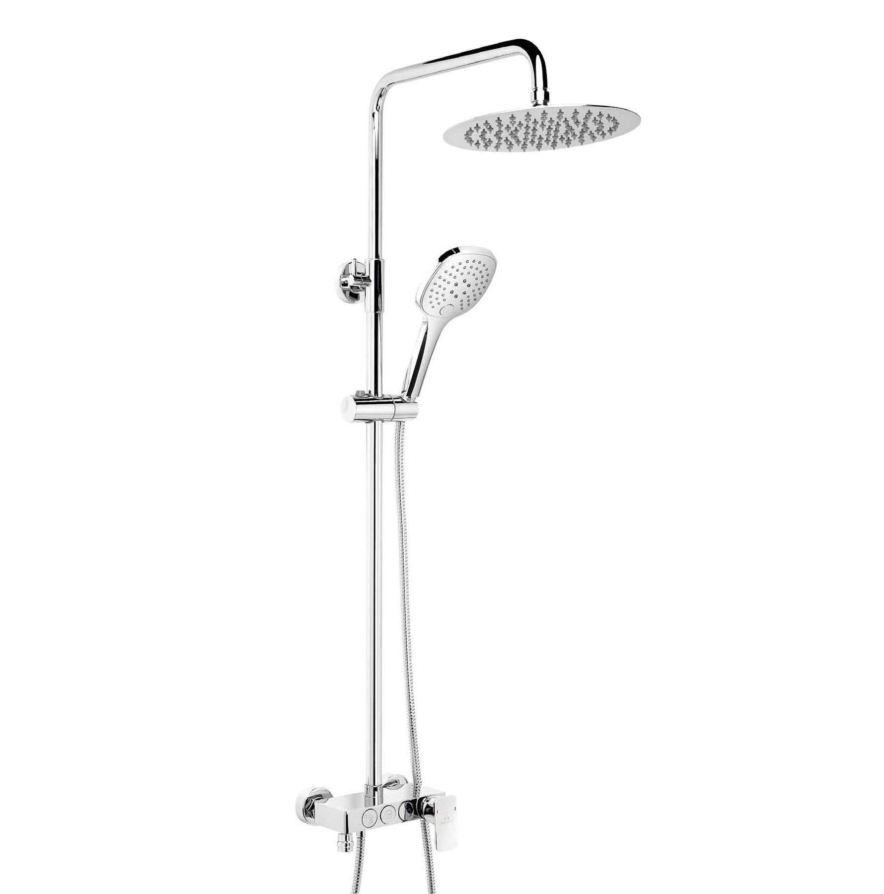 - Mango ducha redondo antical con botón 2 posiciones y flexo acero inox 180 cm