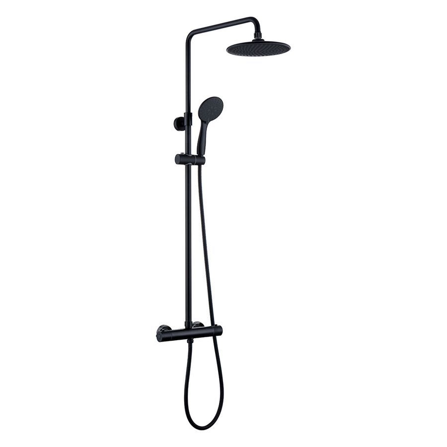 - Mango ducha redondo antical 3 posiciones y flexo acero inox negro