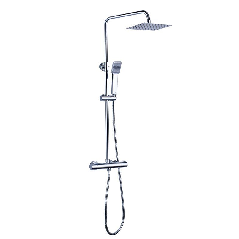 - Mango ducha cuadrado antical y flexo acero inox 200 cm
