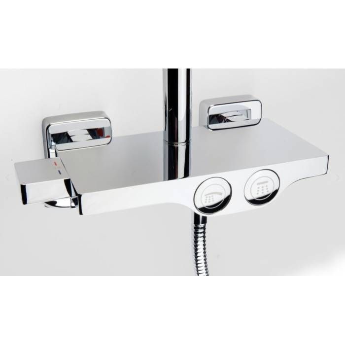 - Combina líneas rectas y curvas con acabado cromo brillo