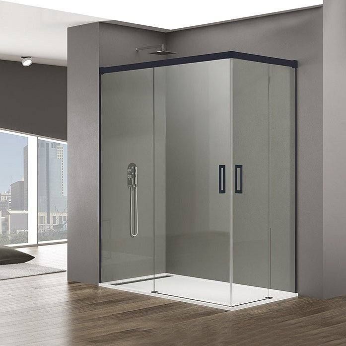 Mampara angular 2 Fijos + 2 Correderas BASIC "Con perfileria en negro"