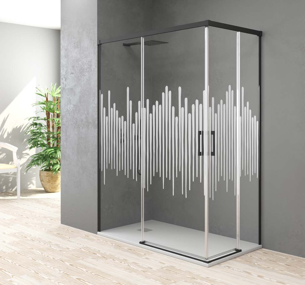Mampara angular 2 Fijos + 2 Correderas YAIZA 07 "Con perfilería en negro"