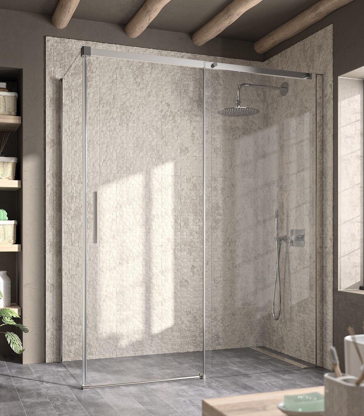 Mampara frontal 1 Fijo + 1 Corredera (+ Lateral fijo) LUNA