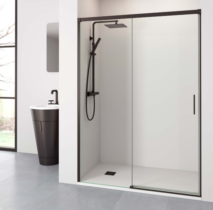Mampara frontal 1 Fijo + 1 Corredera (+ Lateral fijo) YAIZA "Con perfilería en negro"
