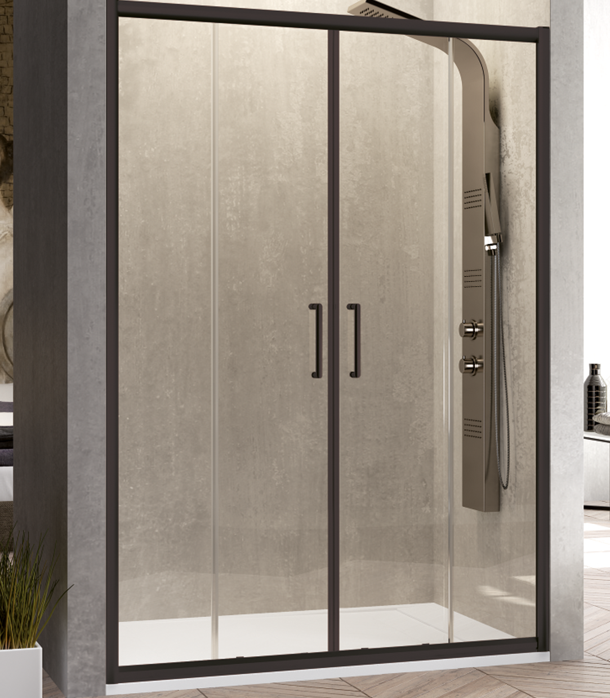 Mampara frontal 2 Fijos + 2 Correderas BELLA "Con perfilería en negro"