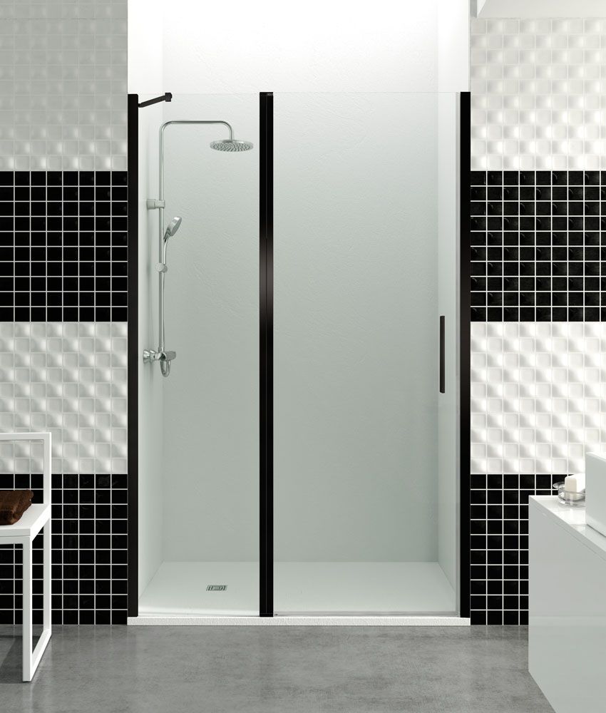Mampara frontal Fijo + Puerta abatible (Con cierre a pared) OPEN "con perfileria en negro"