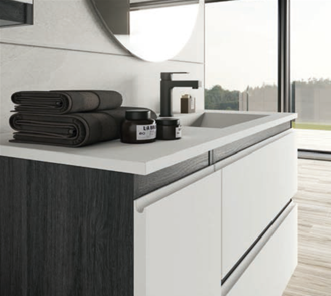 * Opción frente cajón: Inglete, Gola mate, Embutido cromo, Embutido negro, Aluminio mate o Aluminio negro