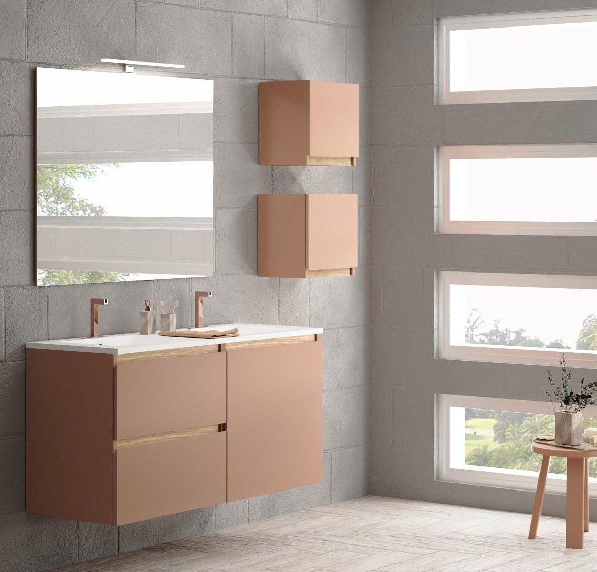 Mostrado en foto: 140 cm - Acabado Cobre / Barras Niágara