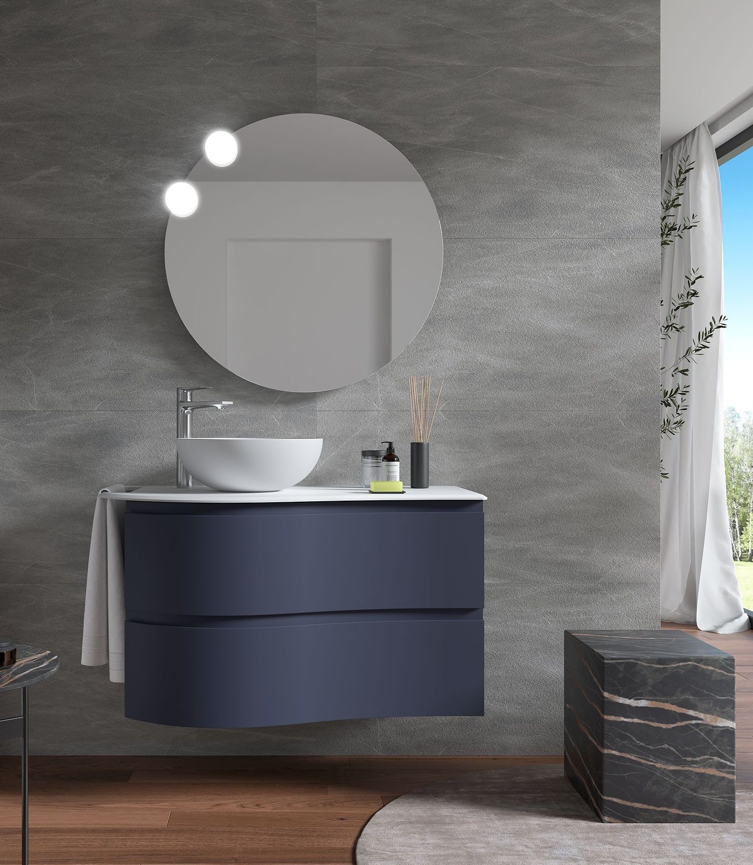 Acabados disponibles: White cotton, Black velvet, Antracita mate, Macchiato, Blue fog, Night blue, Green forest