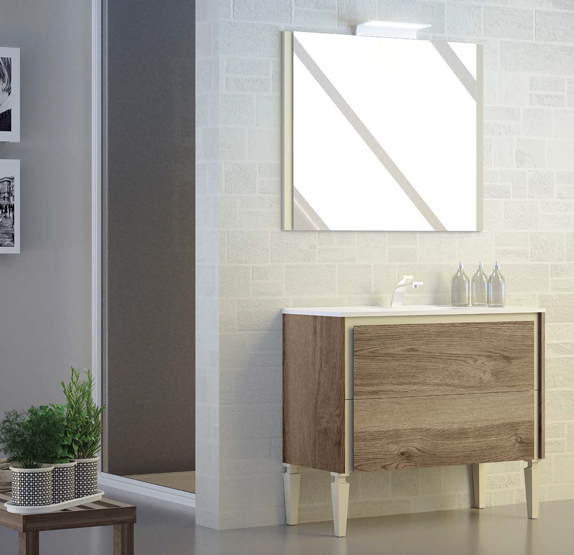 Mostrado en foto: 100 cm - Acabado Tinte nuez / Interior frente Panna